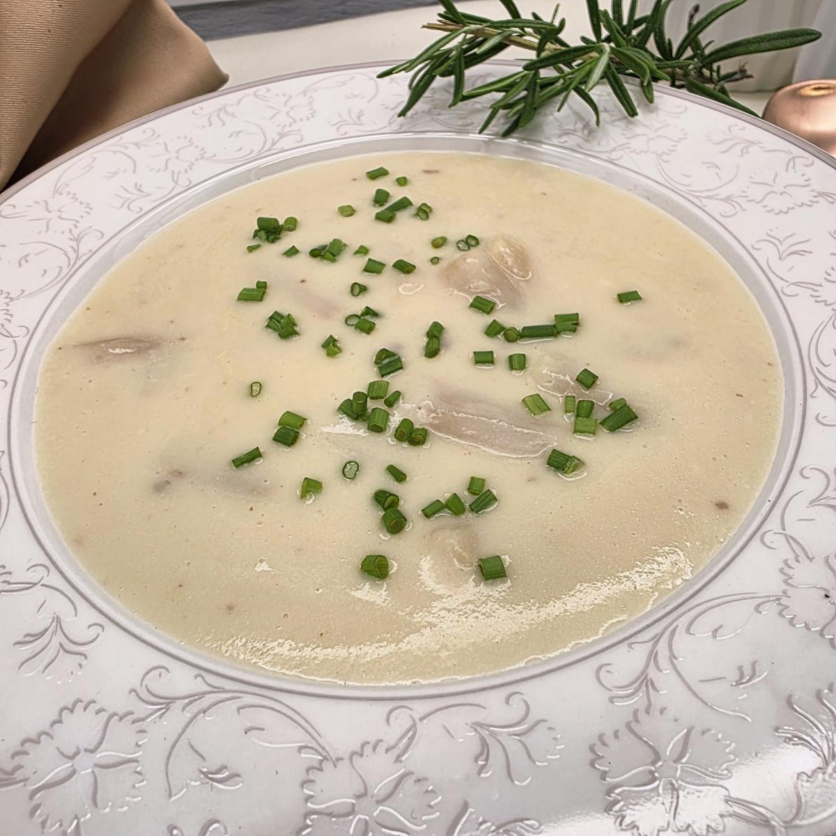 Spargel, Sahne und Butter verleiht dieser Suppe ihren vollmundig-cremigen